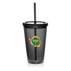 This 16 oz. double-wall acrylic plastic tumbler with matching colored straw is a great way to improve your clients' commute! Measuring 6 1/4"H with a 4" rim and a 2 1/2" base, this eco-friendly item is available in an array of colors and is made from BPA-free material. Customize with an imprint of your company name and logo, brand message and more to improve corporate visibility on a desirable handout. What an excellent way to enjoy water, soda, iced coffee or whatever beverage you fancy!